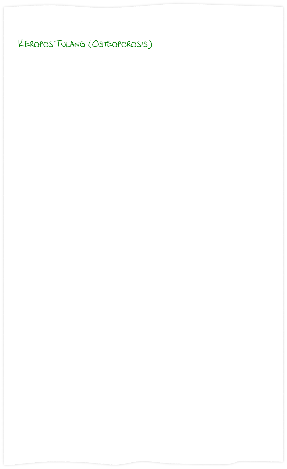 Pengeroposan tulang adalah istilah awam untuk suatu kondisi kerapuhan tulang akibat berkurangnya kepadatan/densitas massa tulang. Pengeroposan tulang ini cukup lazim terjadi pada usia senja, meskipun secara umum dibedakan menjadi dua macam yaitu: pengeroposan pasca menopause dan pengeroposan senilis (masa tua). Kepadatan tulang manusia pada umumnya bertambah pada masa muda, mencapai puncak pada usia dekade 3 (25 – 30 tahun), dan menurun seiring bertambahnya usia hingga akhir masa hidup. Dalam pengamatan menggunakan mikroskop struktur tulang tetap tampak normal hanya bentukan jaring-jaring tulang menjadi tipis dan mudah patah.