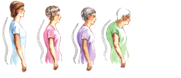Gambar: Keropos tulang belakang (seiring bertambahnya usia, kiri: normal, kanan: keropos)