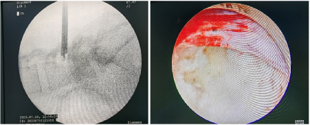 Alat teropong tulang belakang dihubungkan melalui kabel optik ke sumber cahaya dan pengolah data, kemudian ditampilkan ke layar monitor sehingga didapatkan gambar struktur dalam tulang belakang, yang diperbesar dan jelas. Prosedur dipandu dengan alat ronsen (fluoroscopy) sehingga prosedur dapat dilakukan lebih akurat dan tepat.